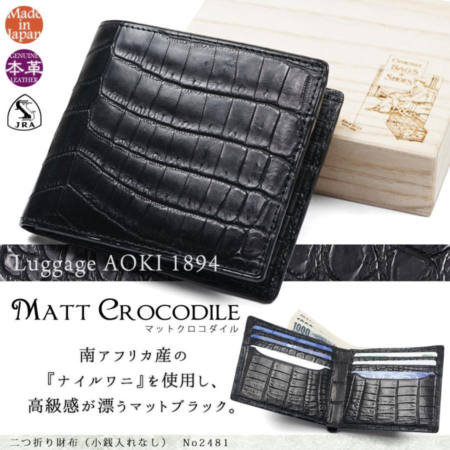 二つ折り財布メンズ 革 ブランド 小銭なし 本革 ラゲージアオキ14 マットクロコダイル レザー ワニ革 日本製 青木鞄 2481 送料無料 2481 Ao ビジネスバッグ 財布のユキオラボ 通販 Yahoo ショッピング